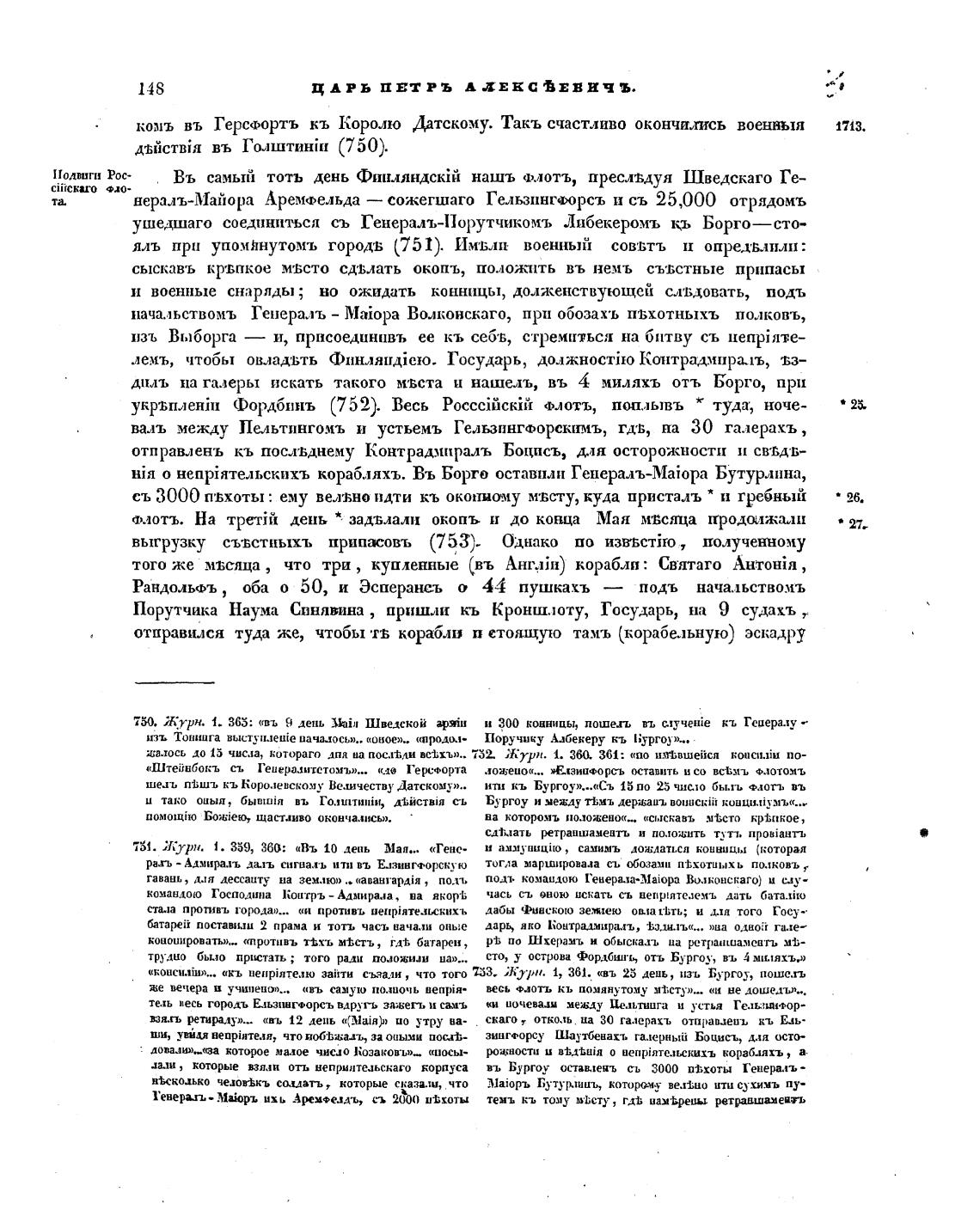 «кт. иенрјятелю 3aiiTH с-ыгалн , что того 753- Журн. 1, 361. «въ 25 день, изъ Бургоу, поше.тъ
