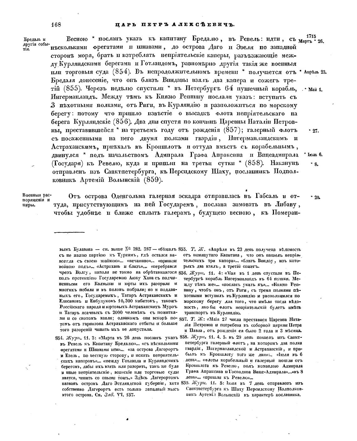 Весною * послань указъ кь капитану Бредалю , въ Ревель: идти съ Маргь • 26.
