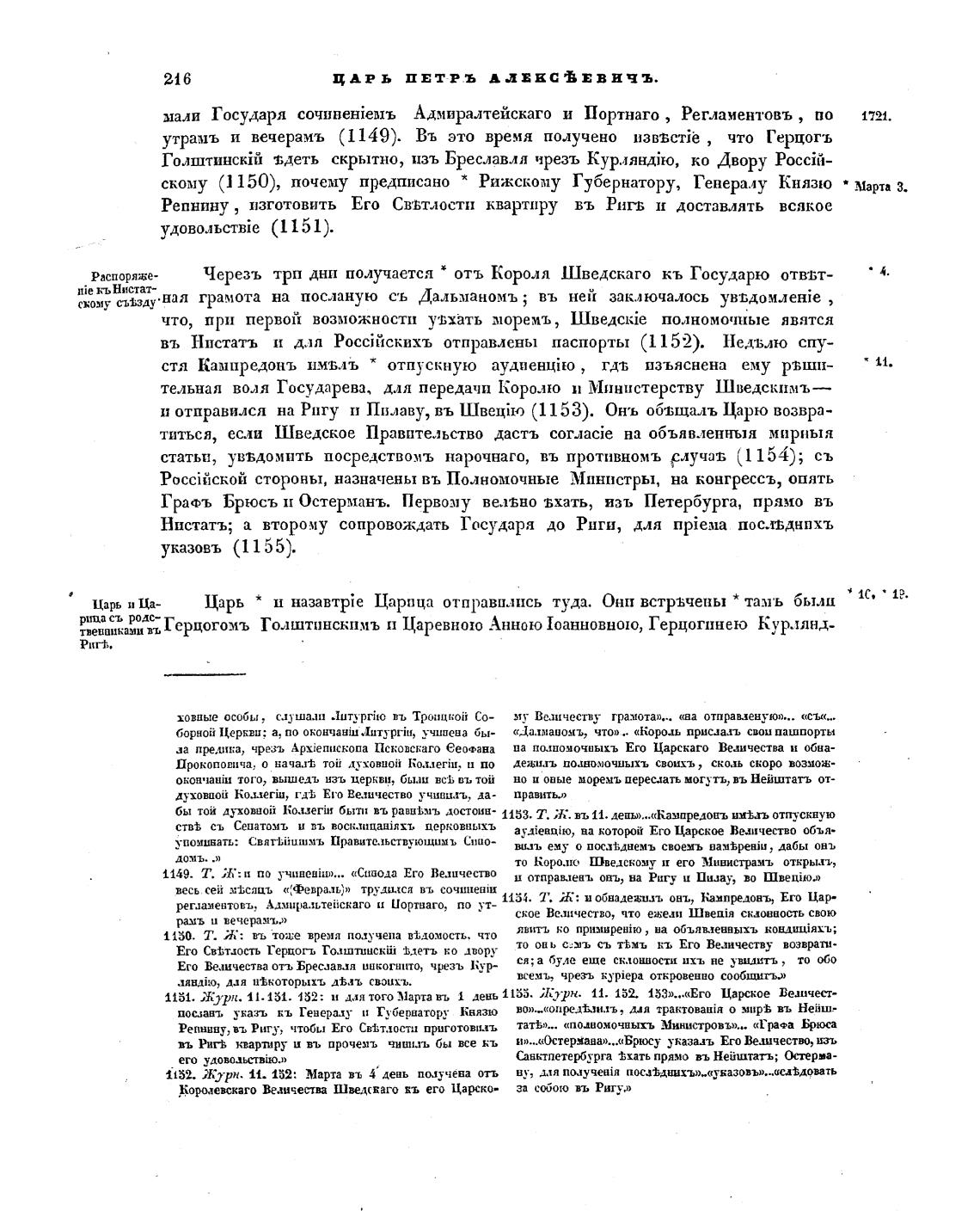 Нистать; а второму сопровождать Государя до Риги, для npieMa пос.однпхъ