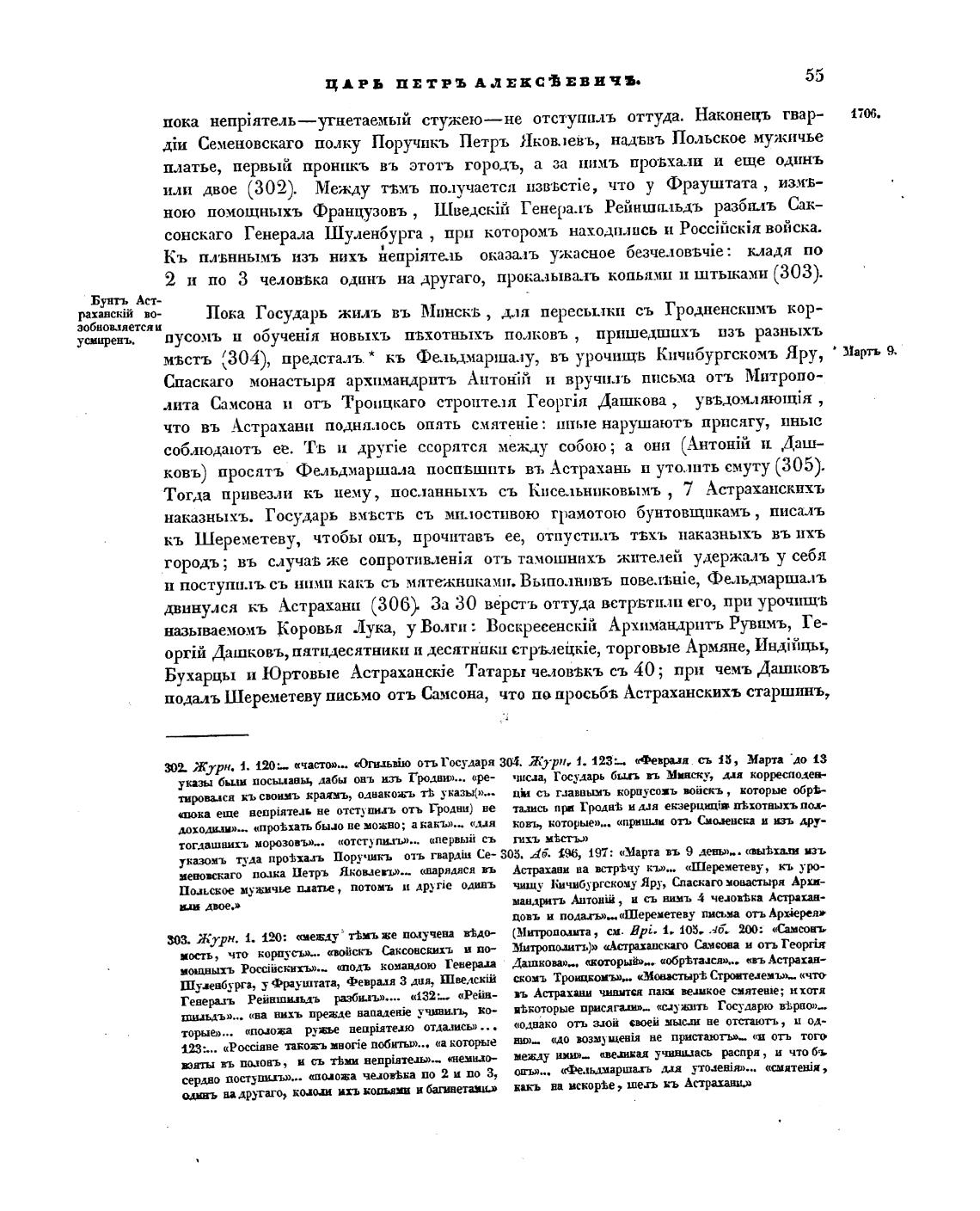 двинулся кь Астрахани (306) За 30 вёрстъ оттуда велрБти.,111 его, при урочмщ•в