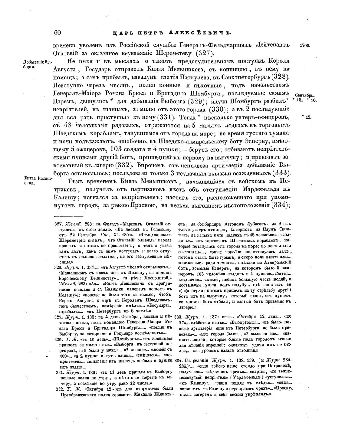 Царемъ, двинулись * для добыват•йл Выборга (329); идучи Шомбур1•љ разбилъ* • 15. • 10.