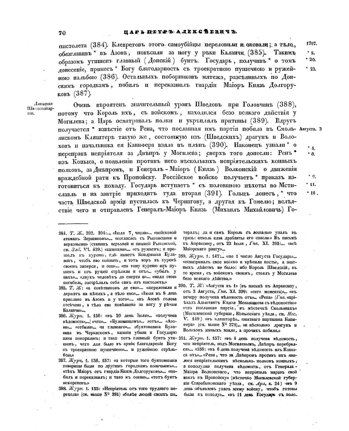 Т. Ж. 392. 394:.— «110."1 числа»... «войсковой терял; да ц саяъ Король съ мшалыо упахь въ