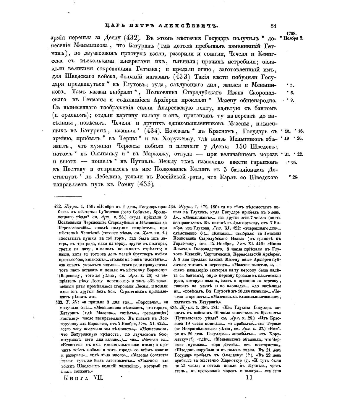 ныхъ въ БатуринБ , казнили * (434). Ночевавъ * въ Красномъ, Государь сь
