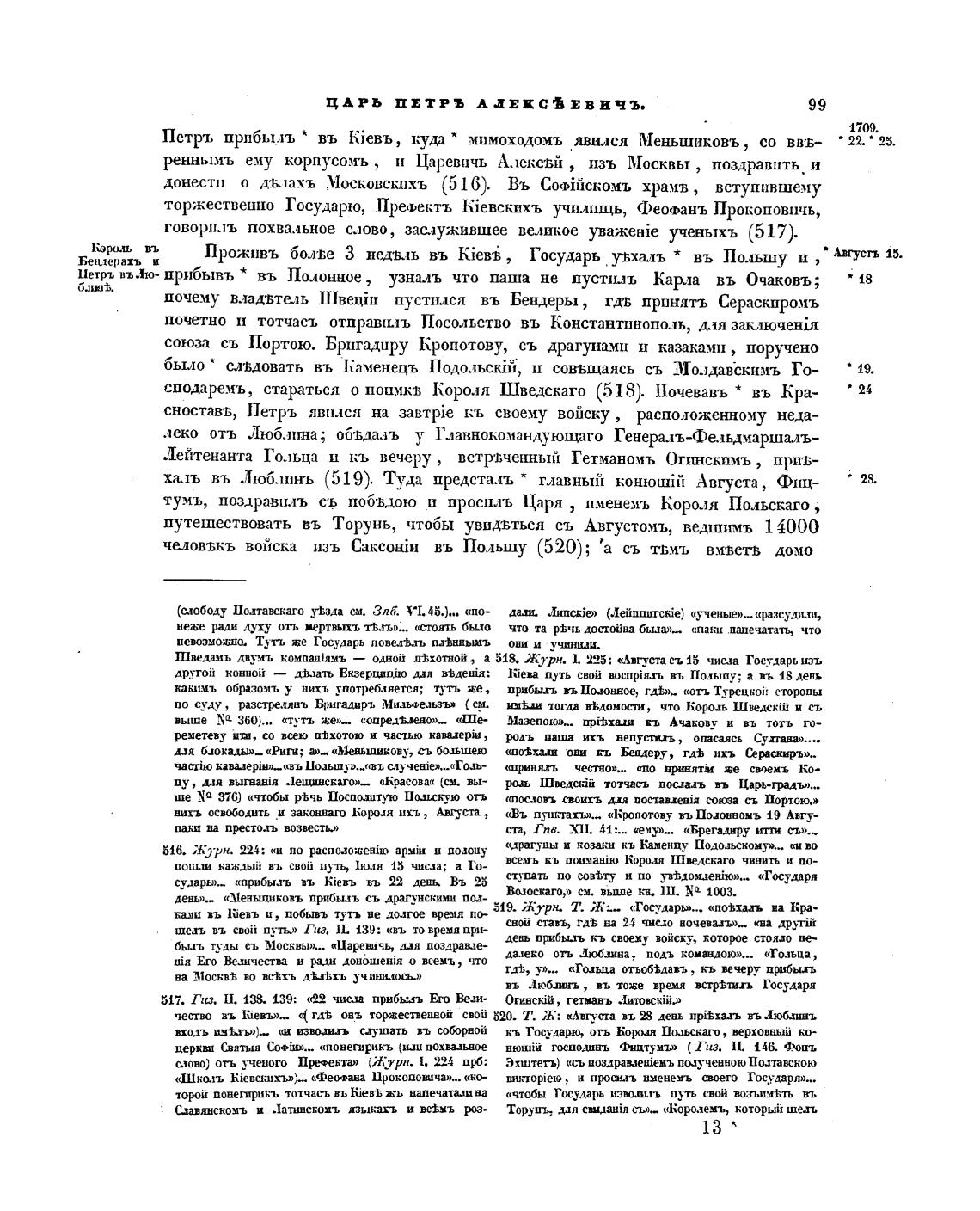 петръ вълю- прибывъ * въ Полонное, узналъ что паша не пуст•и.тъ Карла въ Очаковъ;