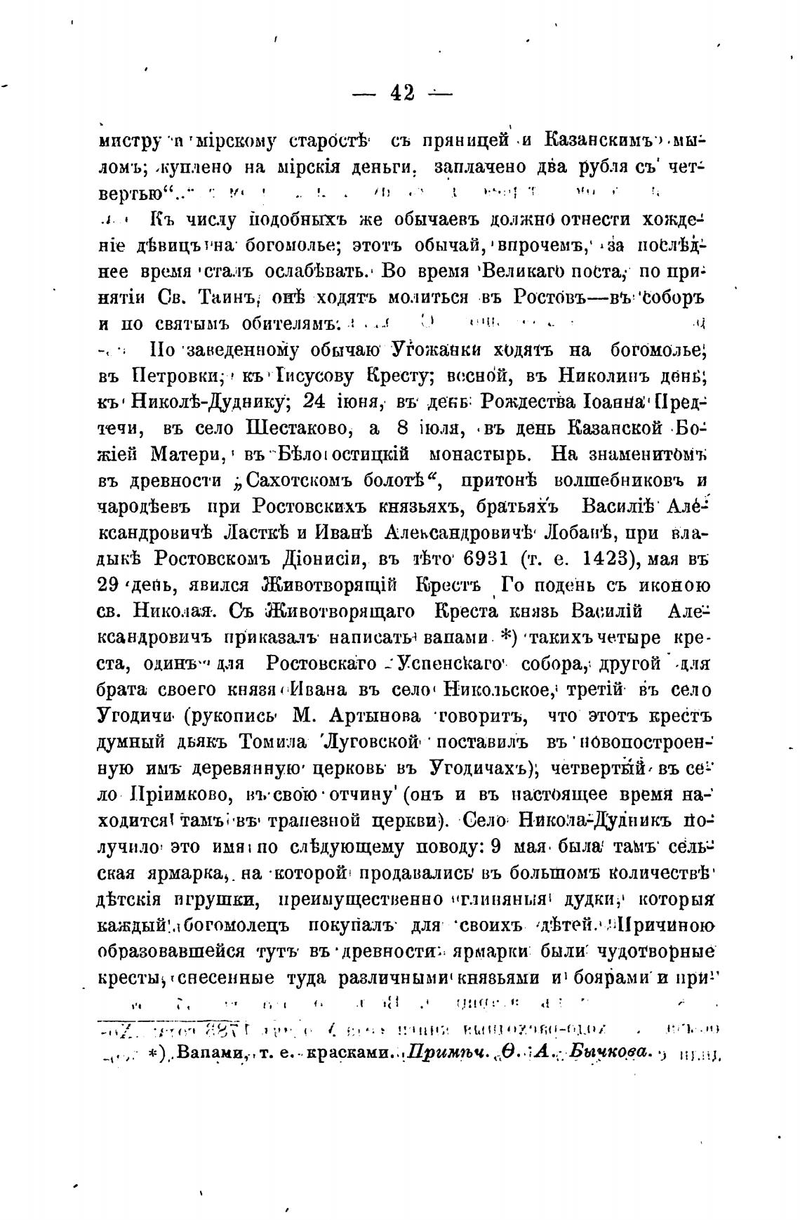 Угодичи. (рукописы М. Артынова •говоритъ, что этотъ креётъ