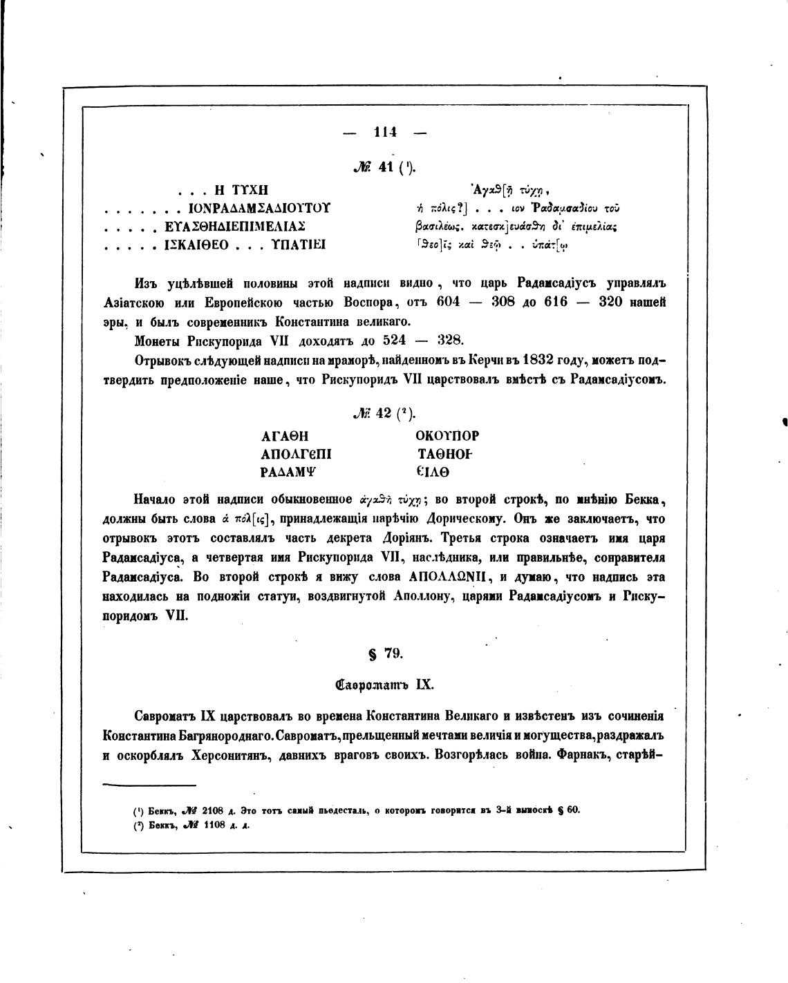 Отрывокъ сл%дующей надписи на мраморь, найденноиъ въ Керчи въ 1832 году, можетъ под—