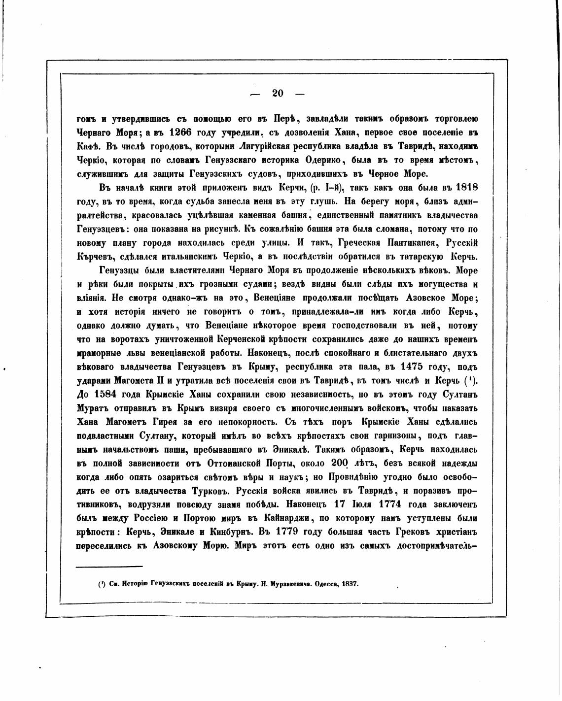 С) Ист. Генуэзскихъ поселенШ въ Крыиу. Н. Мурзавевяч•. Одесса, 1837.