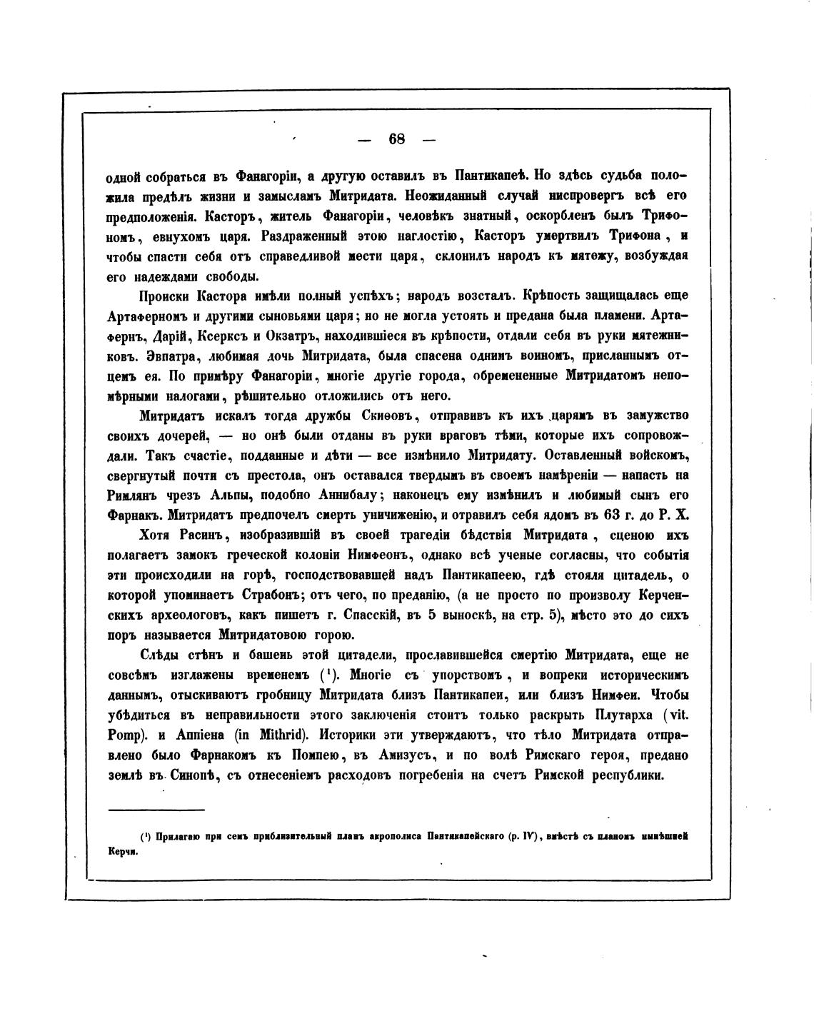 даннымъ, отыскиваютъ гробницу Митридата близь Пантикапеи, или близь Нимфеи. Чтобы