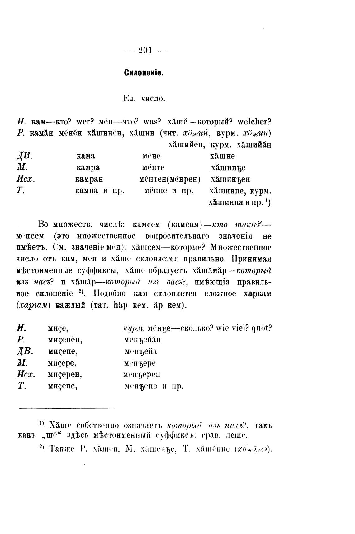 И. кам—кто? wer? МёН—Ч'ТО? was? .xiIIIF —который? welcher?