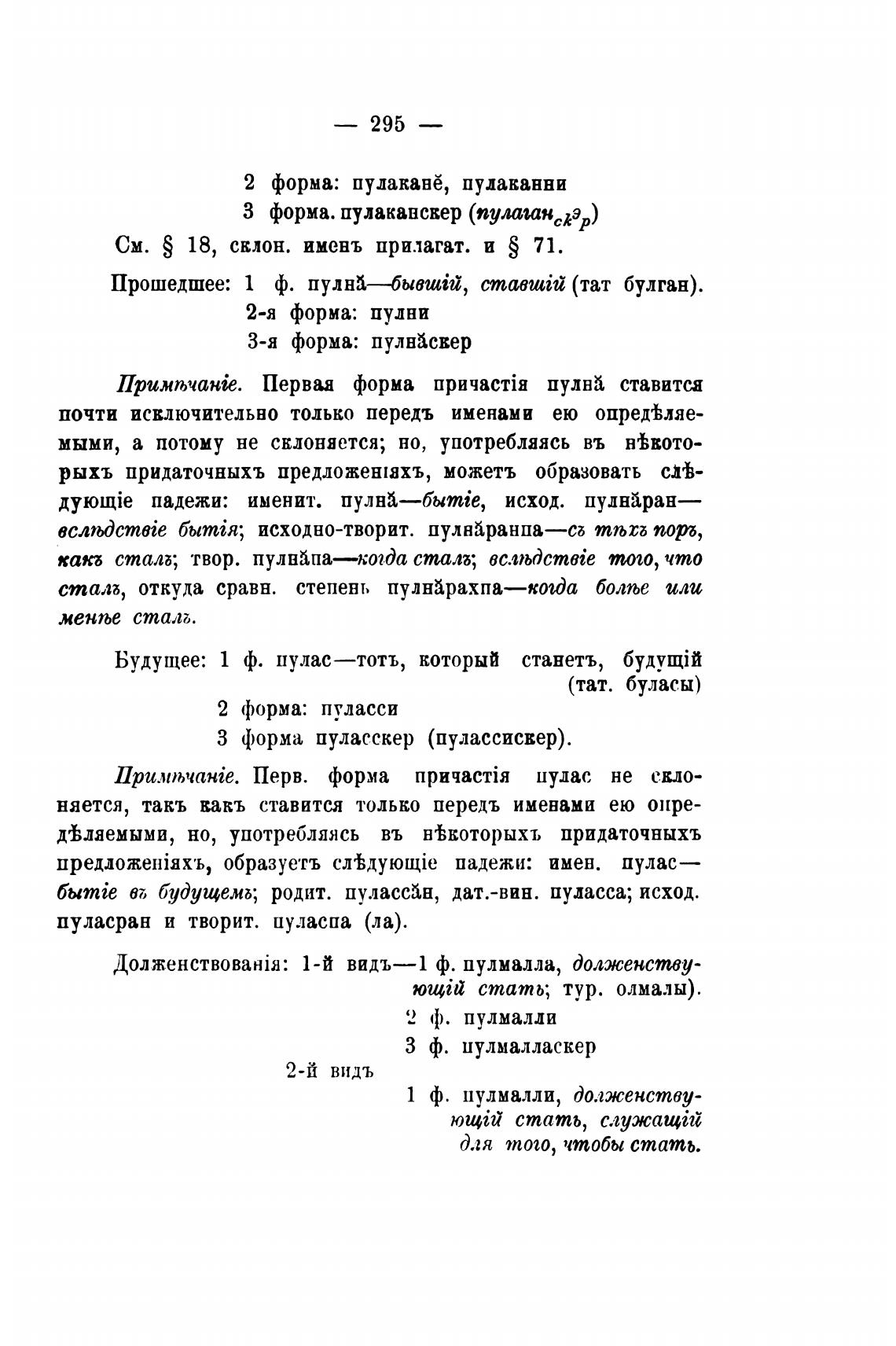 Прошедшее: 1 ф. пулна—бывшы, ставшйђ (тат булган).