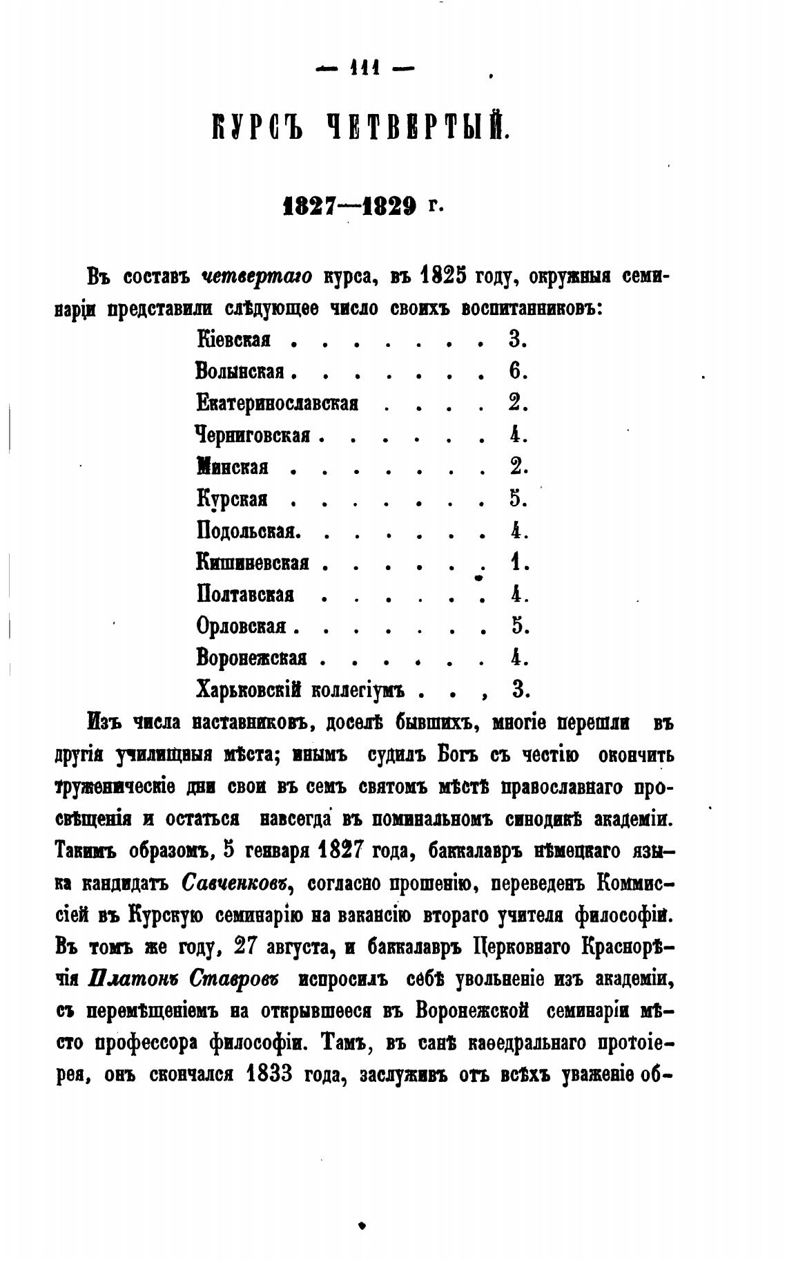 Въ составь четвертаго курса, въ 1825 году, окружвыя семи-