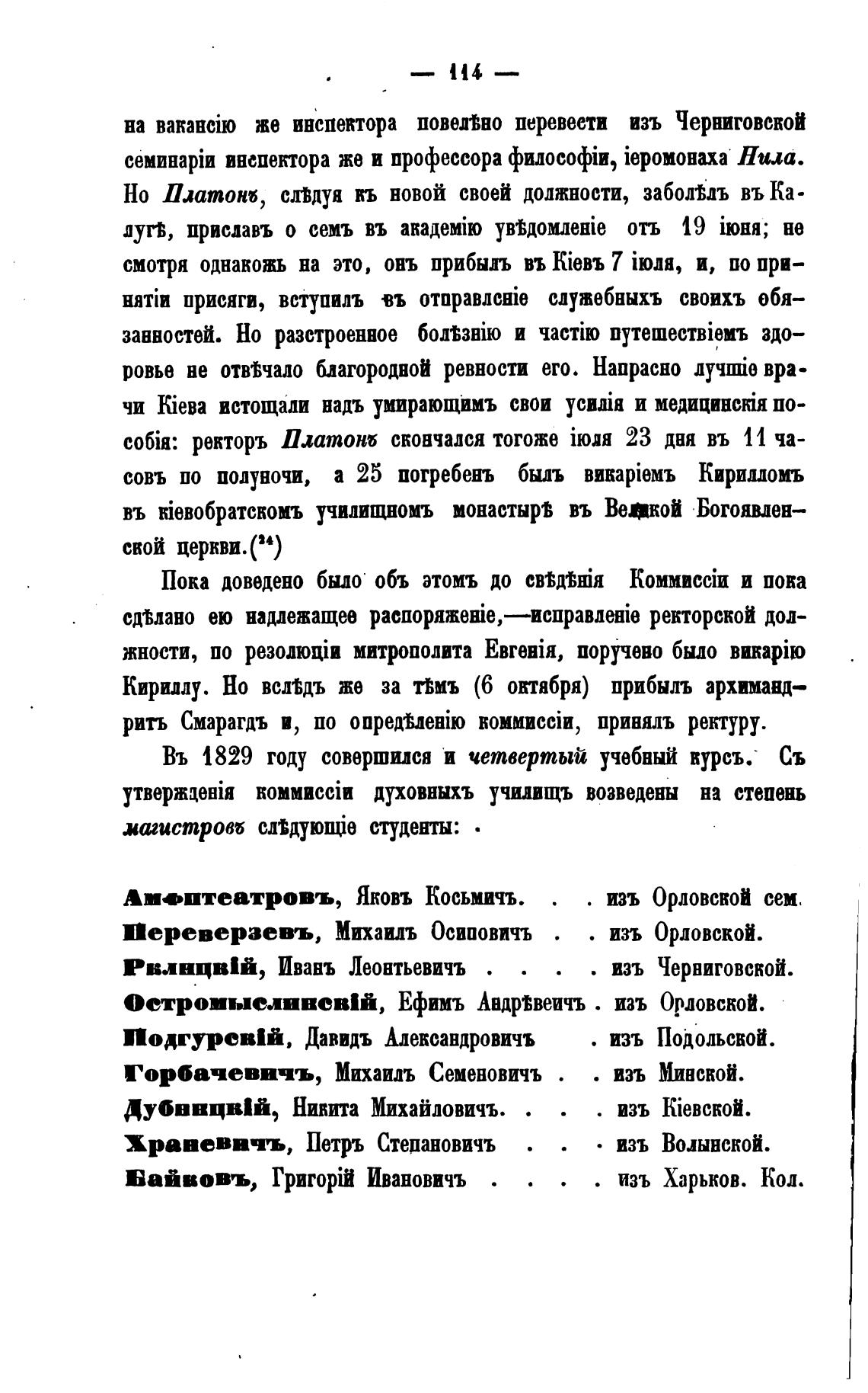 c06ir. ректоръ Платонб скончался тогоже ii01H 23 дня въ 11 ча-