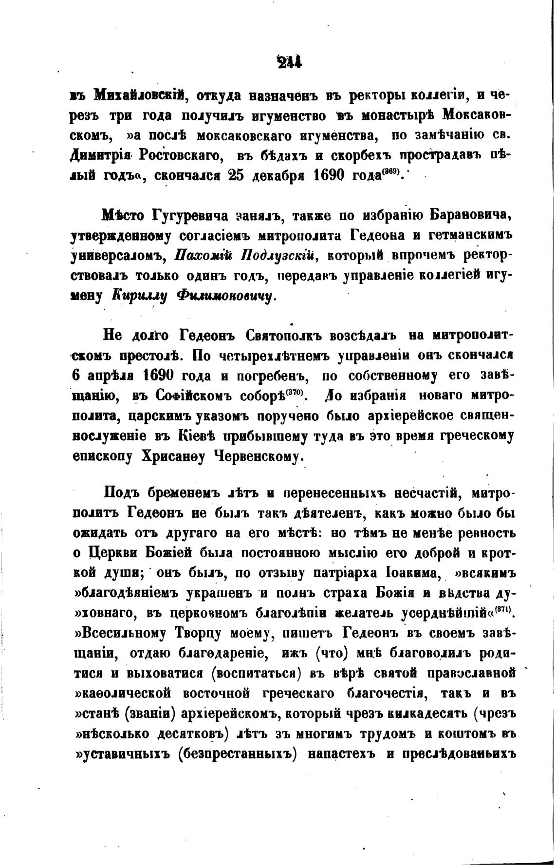 Не допо Гедеонъ Святополкъ возсТдалъ на митрополит-