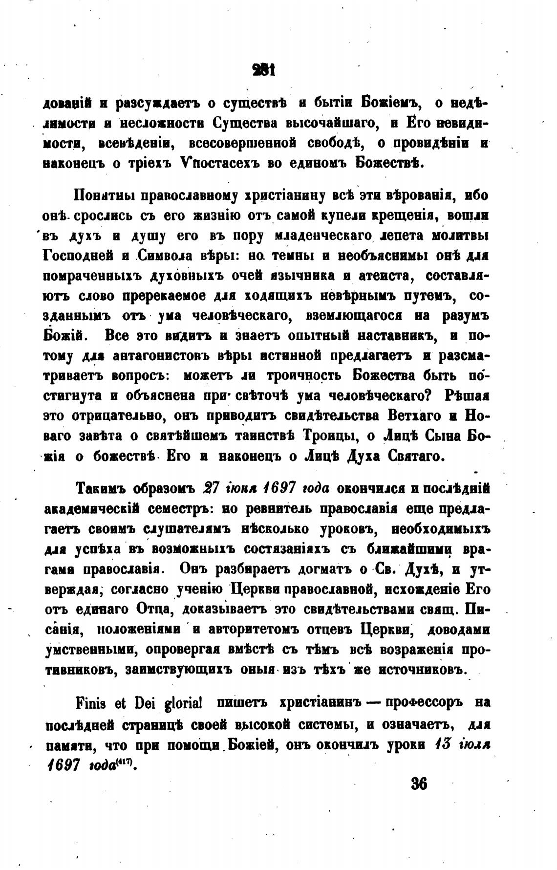 Finis et Dei glorial пишеть — профессоръ на