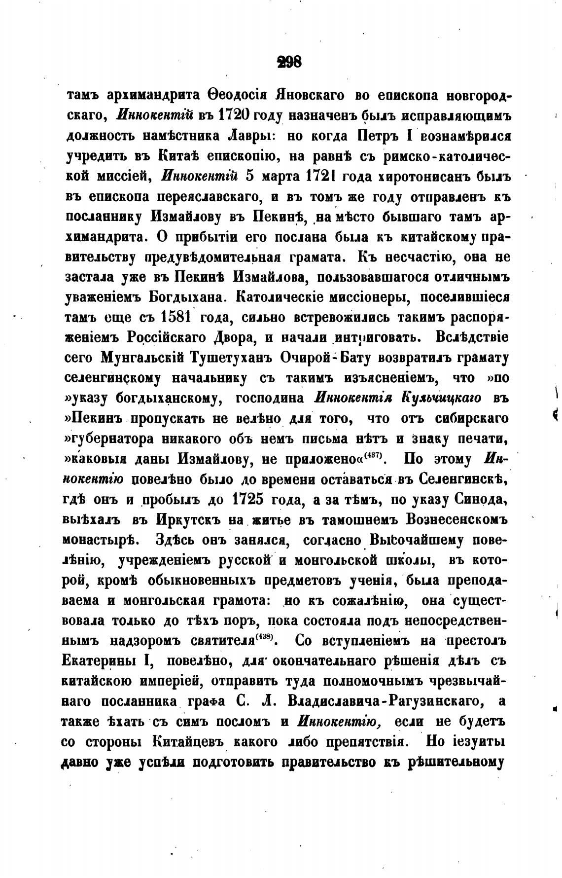 гдеЬ онъ и пробьиъ до 1725 года, а за по указу Синода,