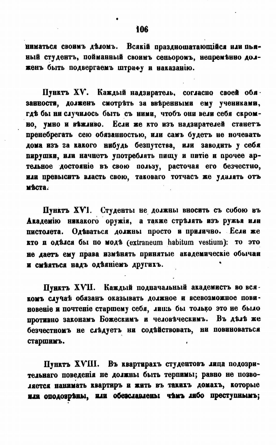 Пунктъ XVl. Студенты не должны вносить съ собою въ