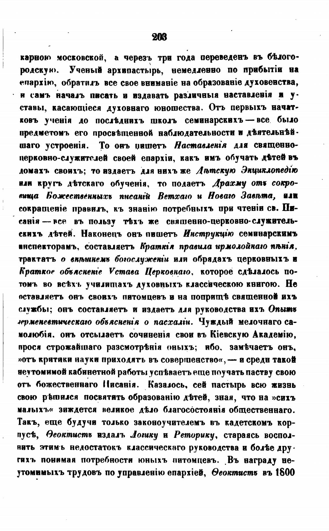 утомвмыхъ трудовъ по enapxiet, Эеоктисть въ 1800