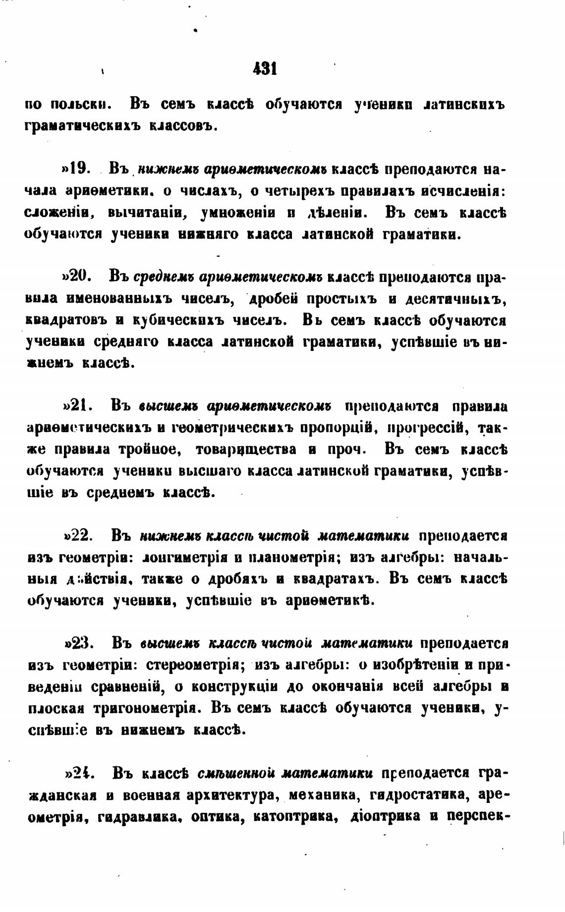»22. Въ нижнеш классљ чистой матехатики преподаетса