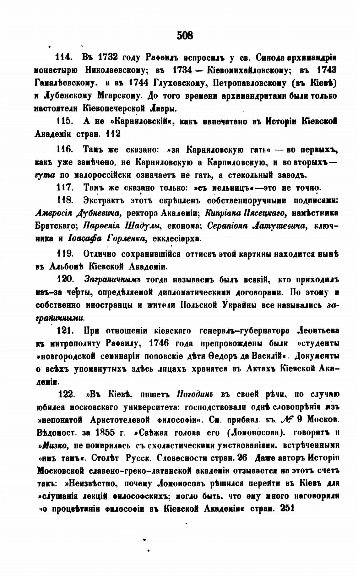 такъ: »Неизв%стно, почему Ломоносовъ р•шилса перейти въ kieBb для