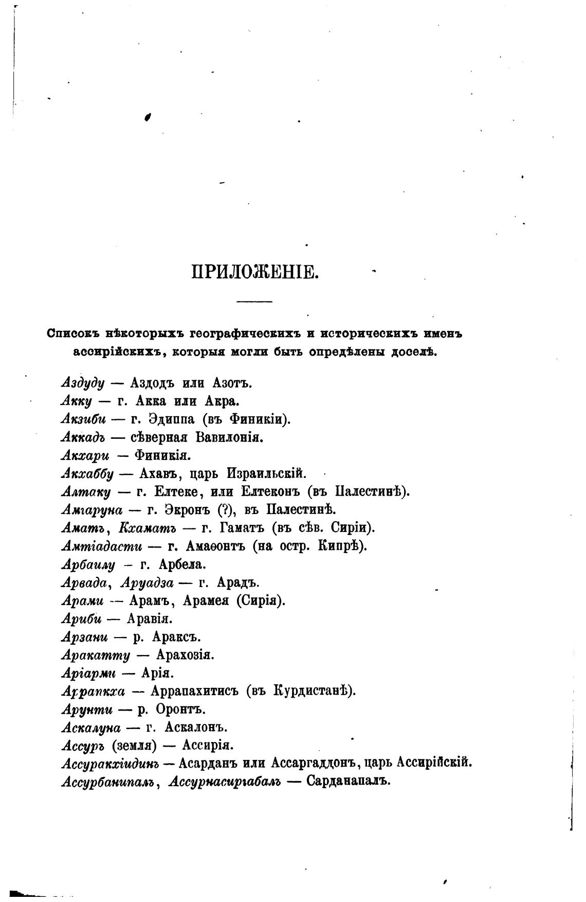 СПИСОЕЪ нПоторыхь географичесвихъ и историчесвихь имень