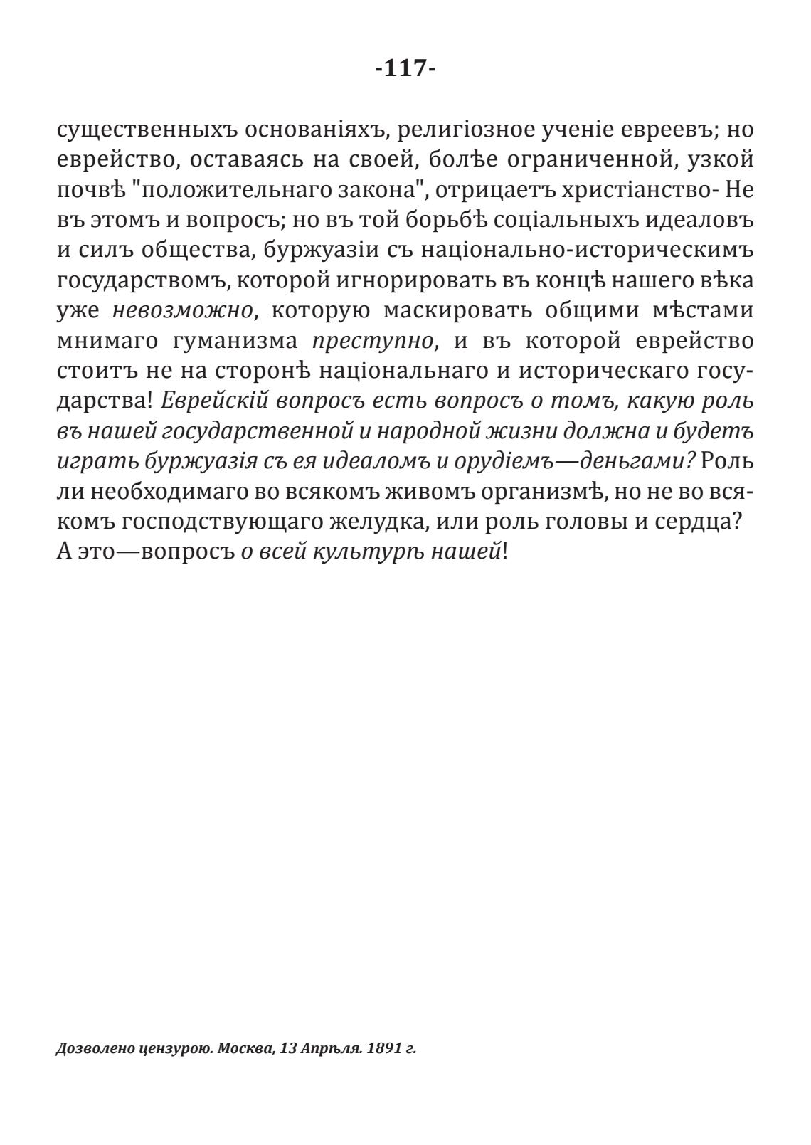 Дозволено цензурою. Москва, 13 Апрљля. 1891 г.