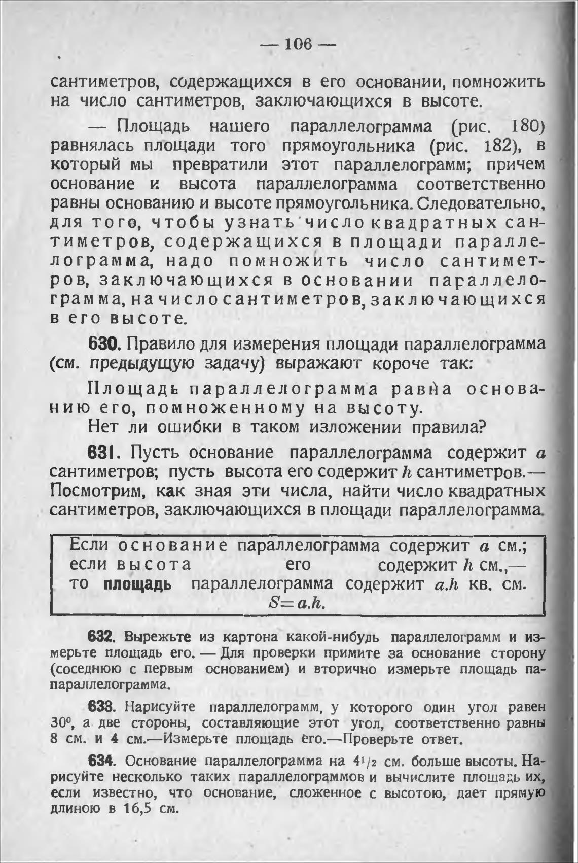 630. Правило для измерения площади параллелограмма
