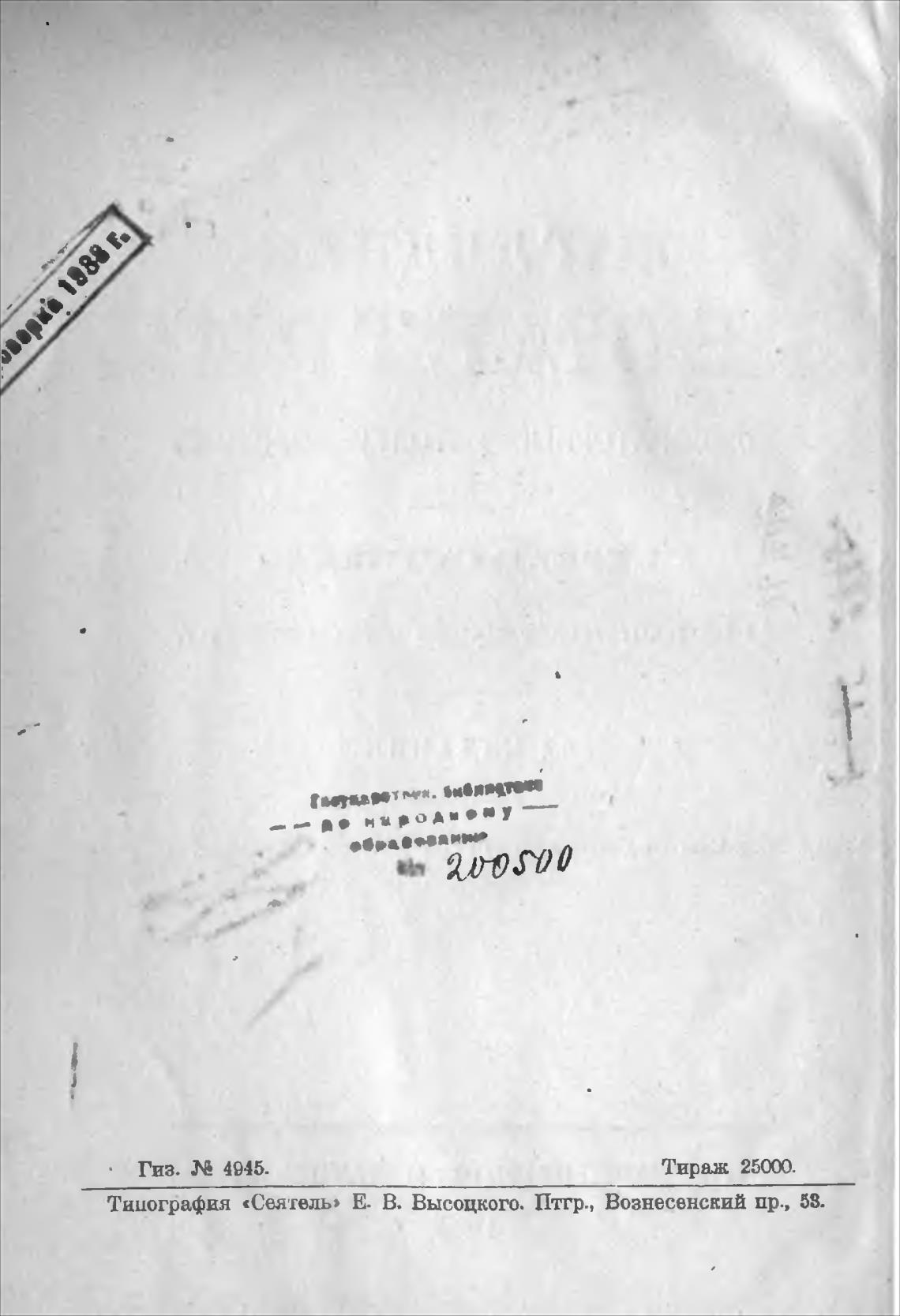 Тицография «Сеятель» Е. В. Высоцкого. Птгр., Вознесенский пр., 53.