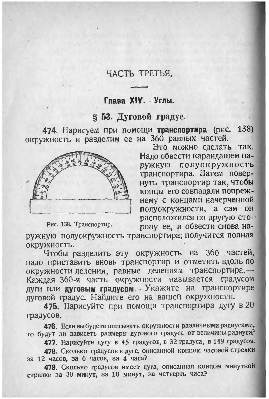 дуги или дуговым градусом.—Укажите на транспортире