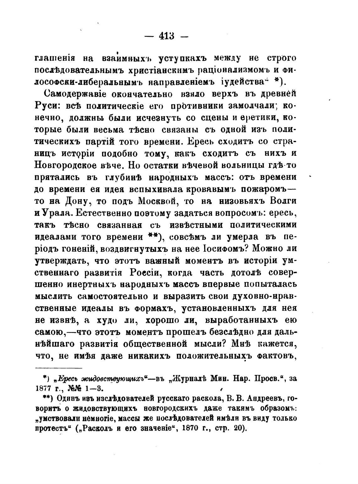**) Одинъ изъ изсйдователей русскаго раскола, В. В. Андреевъ, го-