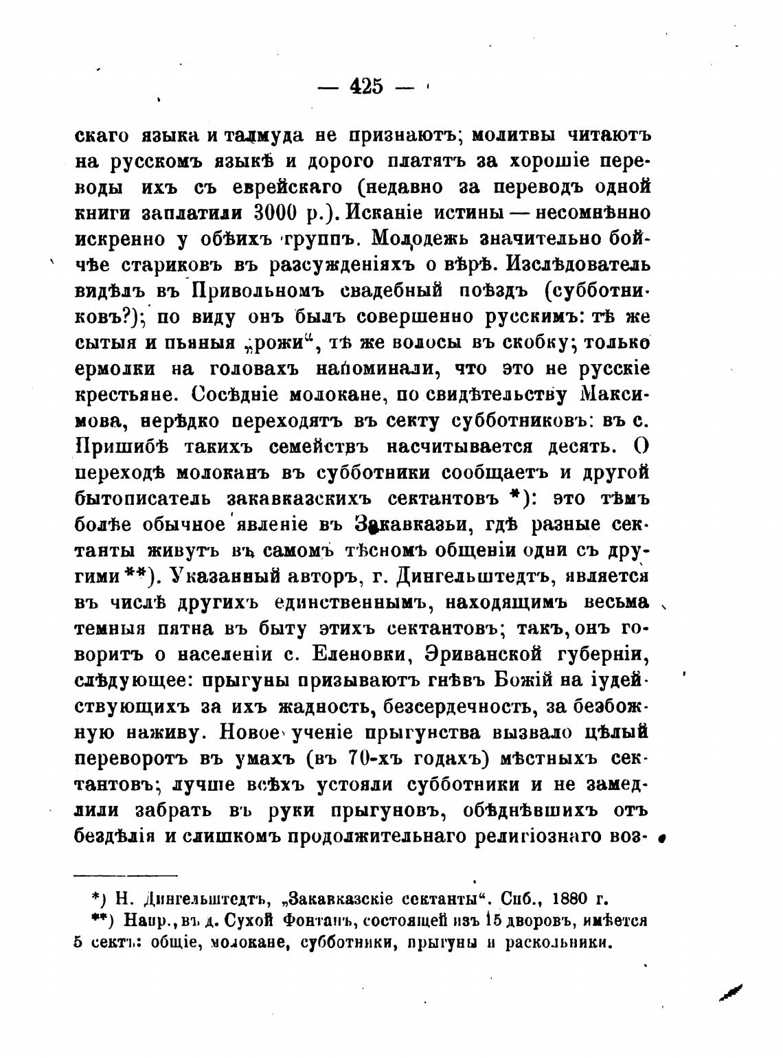 * ) Н. Дингельштедть, „3akaRkuckie сектанты“. Сиб., 1880 т.