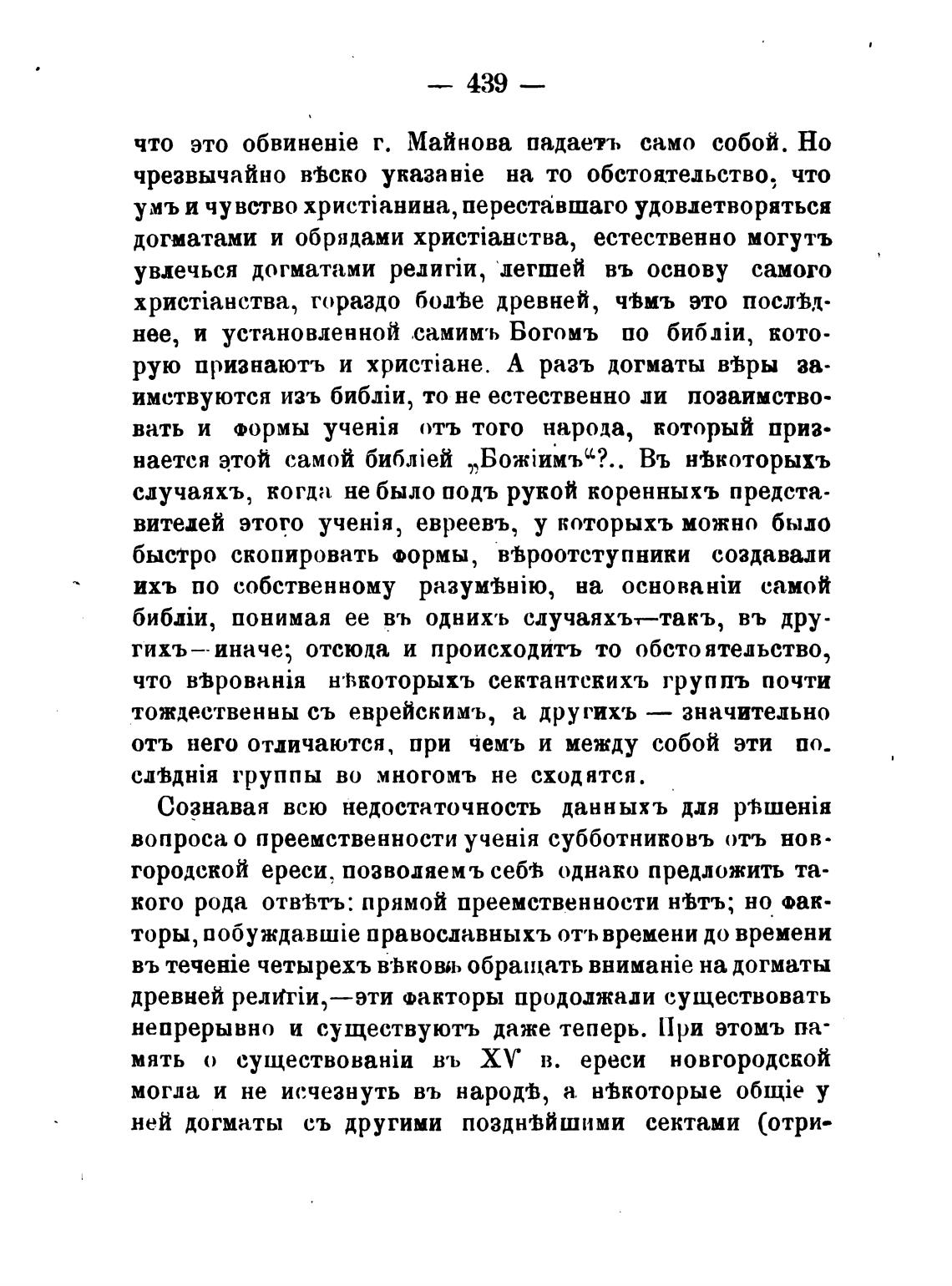 что BjpoBaHiH н•ћкоторыхъ сектантскихъ группъ почти