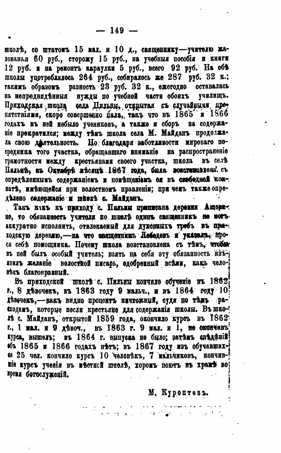 с. Майдань, открытой 1859 года, ововчидо вургь въ 1862“.