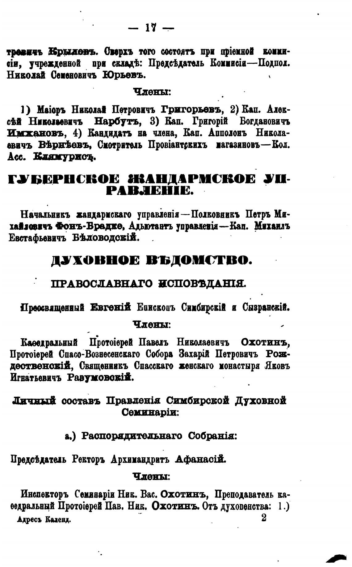 Ичный ооотавъ npauezia Симбирсвой Духовной