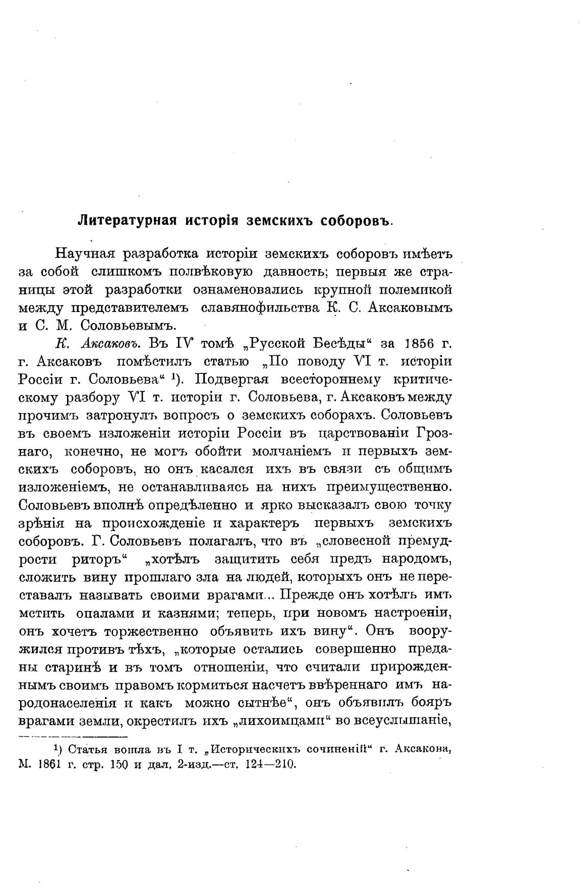 прочимъ затронулъ вопросъ о земскихъ соборахъ. Соловьевъ