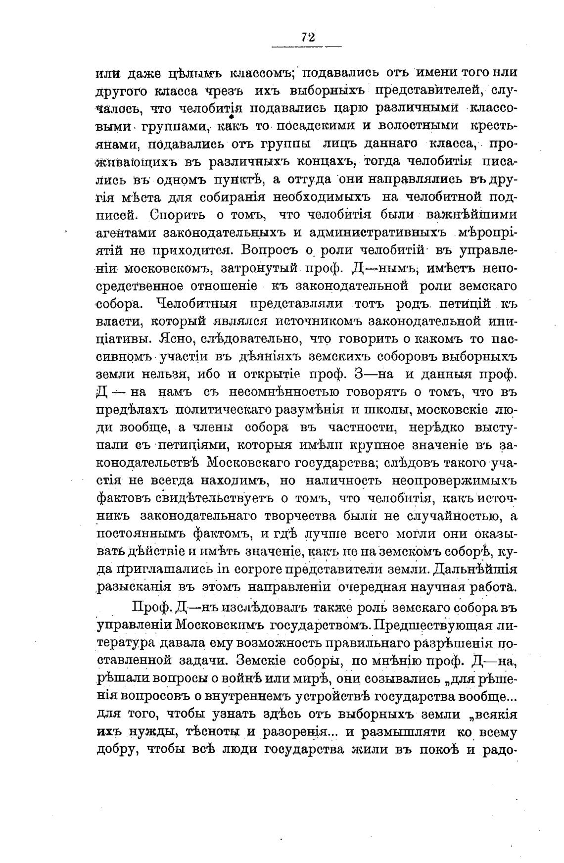 Проф. Д—нъ изслвдовиъ также роль земскаго собора въ