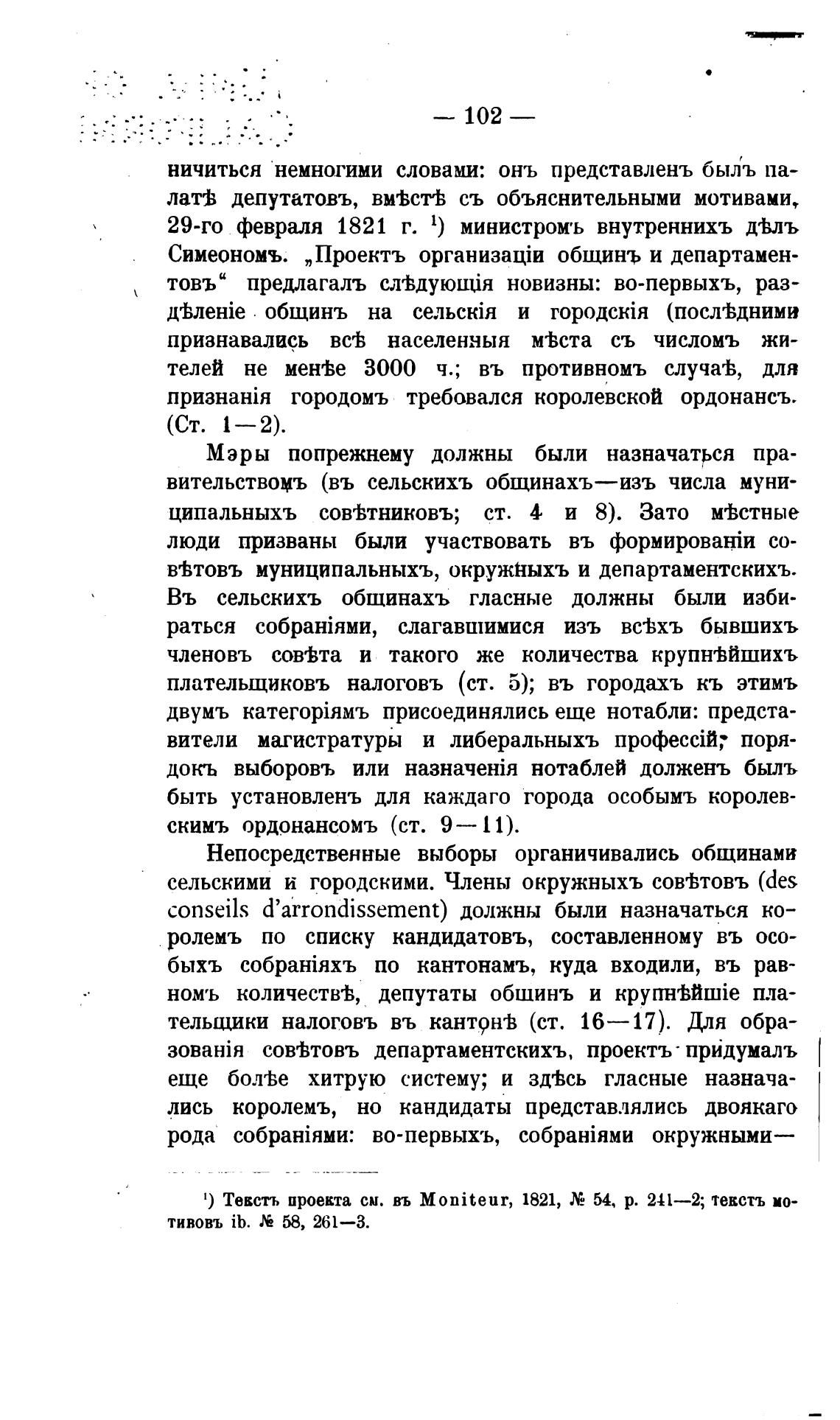 Симеономъ. „Проектъ общинъ и департамен-