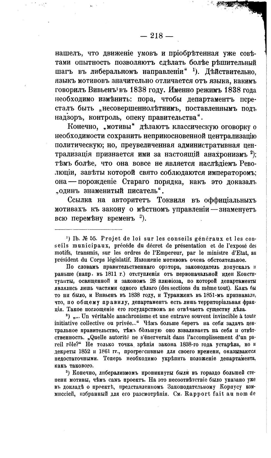 Ссылка на авторитетъ Токвиля въ