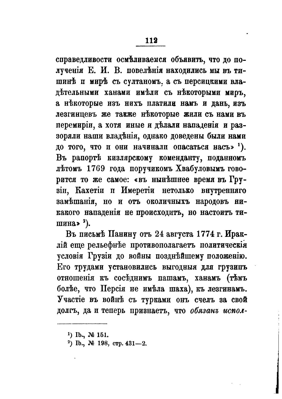 Въ письй Панину отъ 24 августа 1774 г. Ирак-