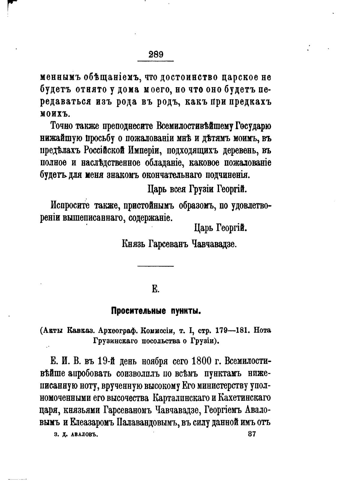 царя, князьями Гарсеваномъ Чавчавадзе, Геор:Јемъ Авало-