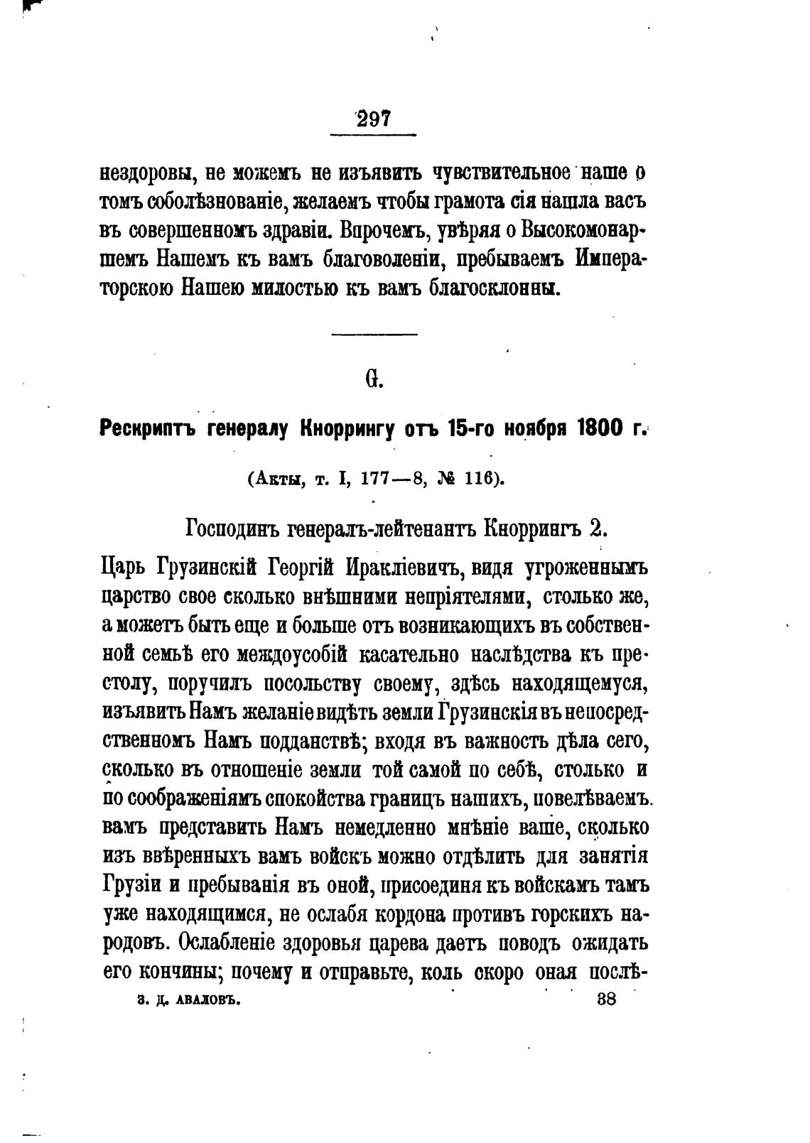 Рескриптъ генералу Кноррингу отъ 15-го ноября 1800 г.