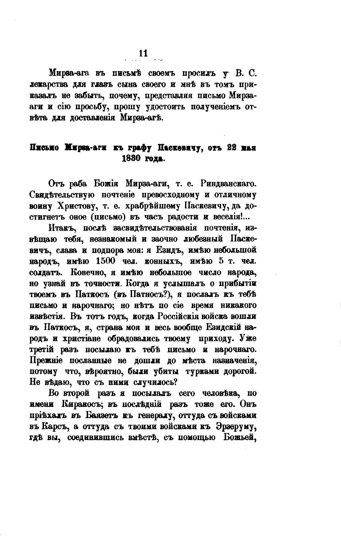 Письмо Мир-аги въ грфу П•овевнчу, он 22 пя