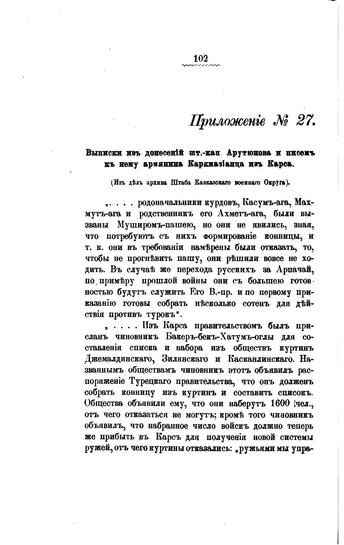 Изъ Карса правительствомъ быль при-