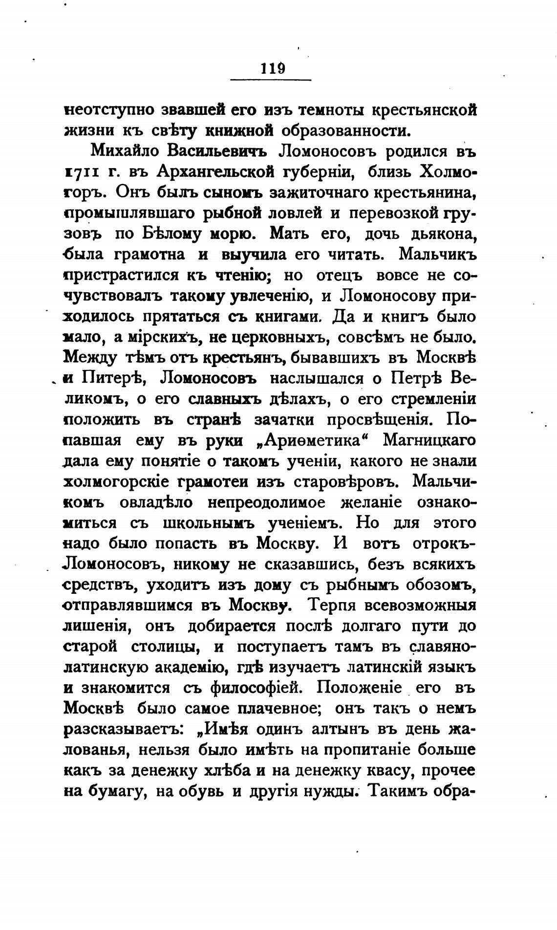 Ломоносовъ, никому не сказавшись, безъ всякихъ