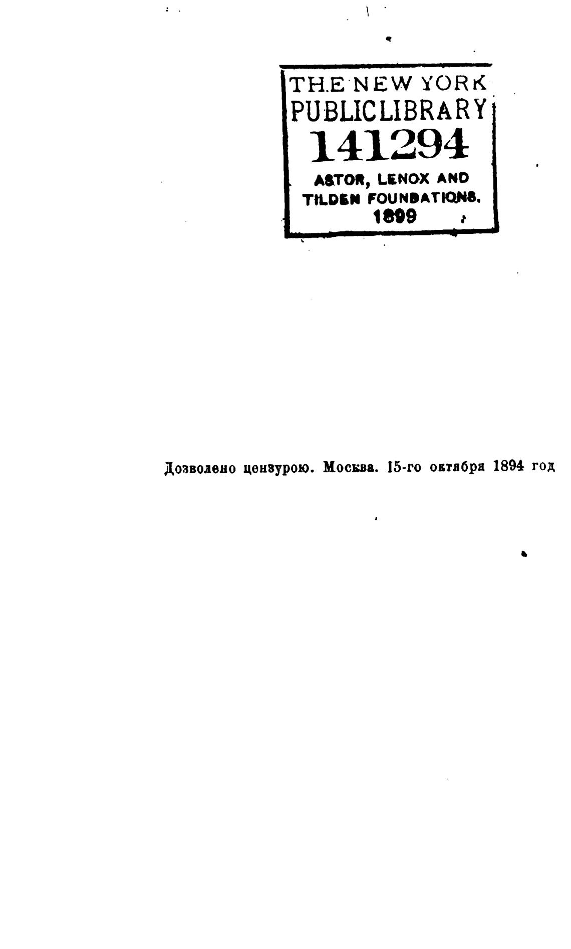 Дозволено цензурою. Москва. 15-го овтябра 1894 год