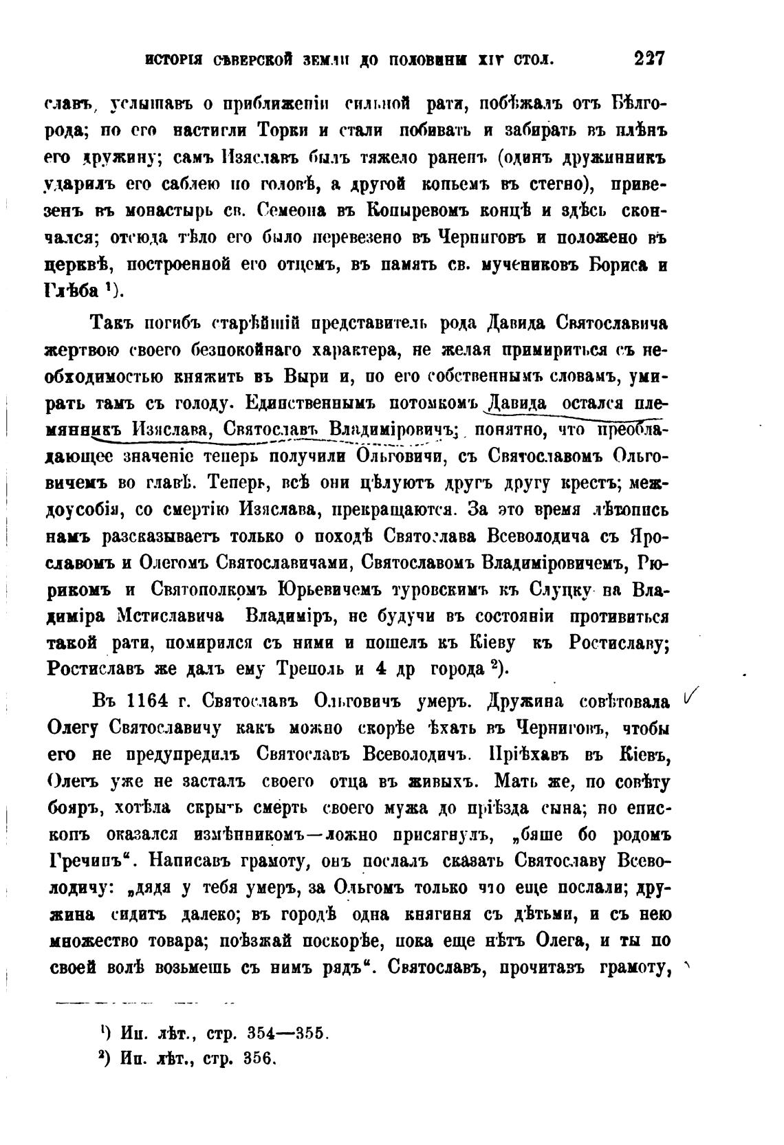 Въ 1164 г. Святославъ Ольговичъ умерь. Дружина