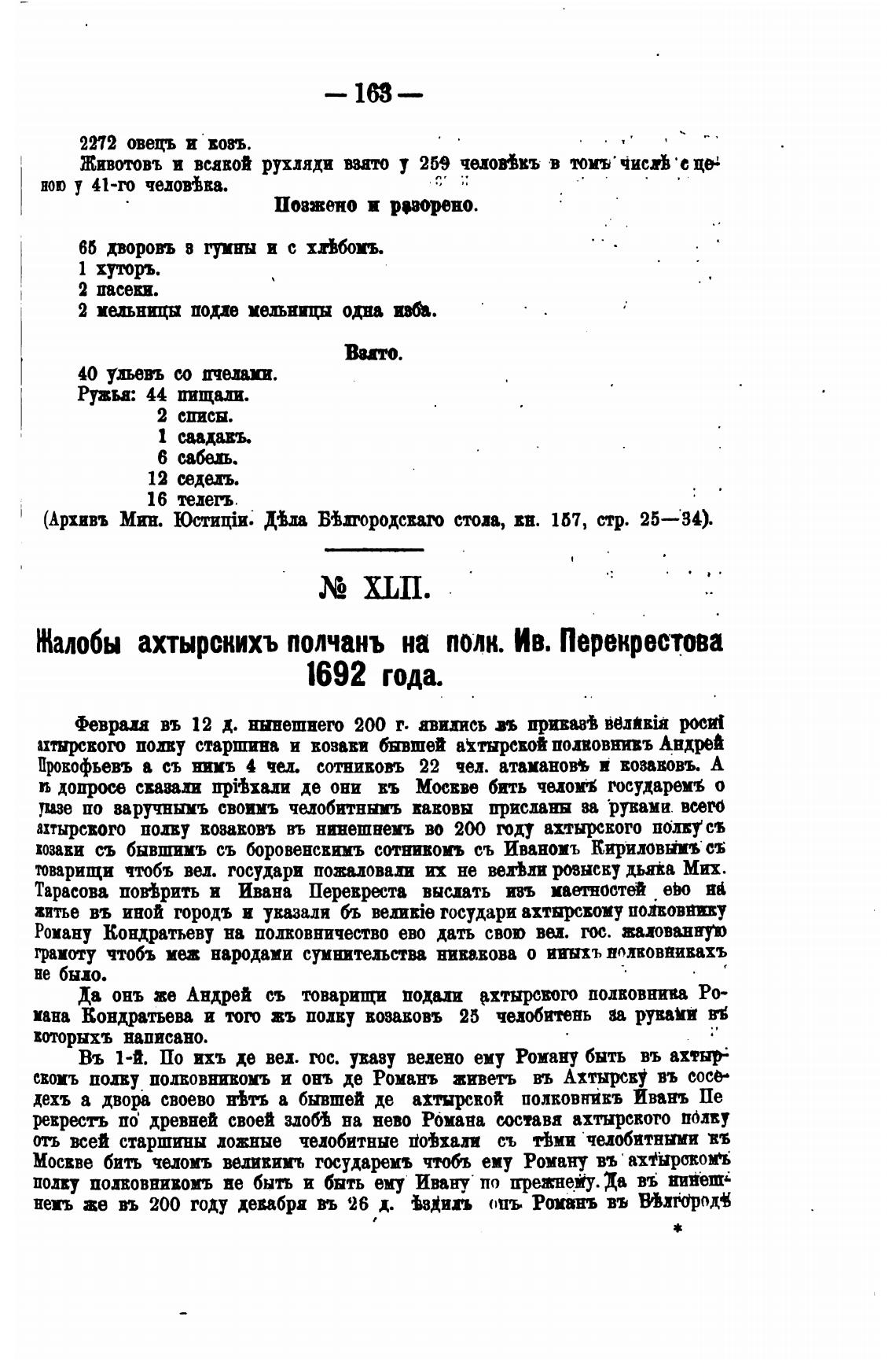 Жалобы ахтырскихъ полчанъ на полк. Ив. Перекрестова