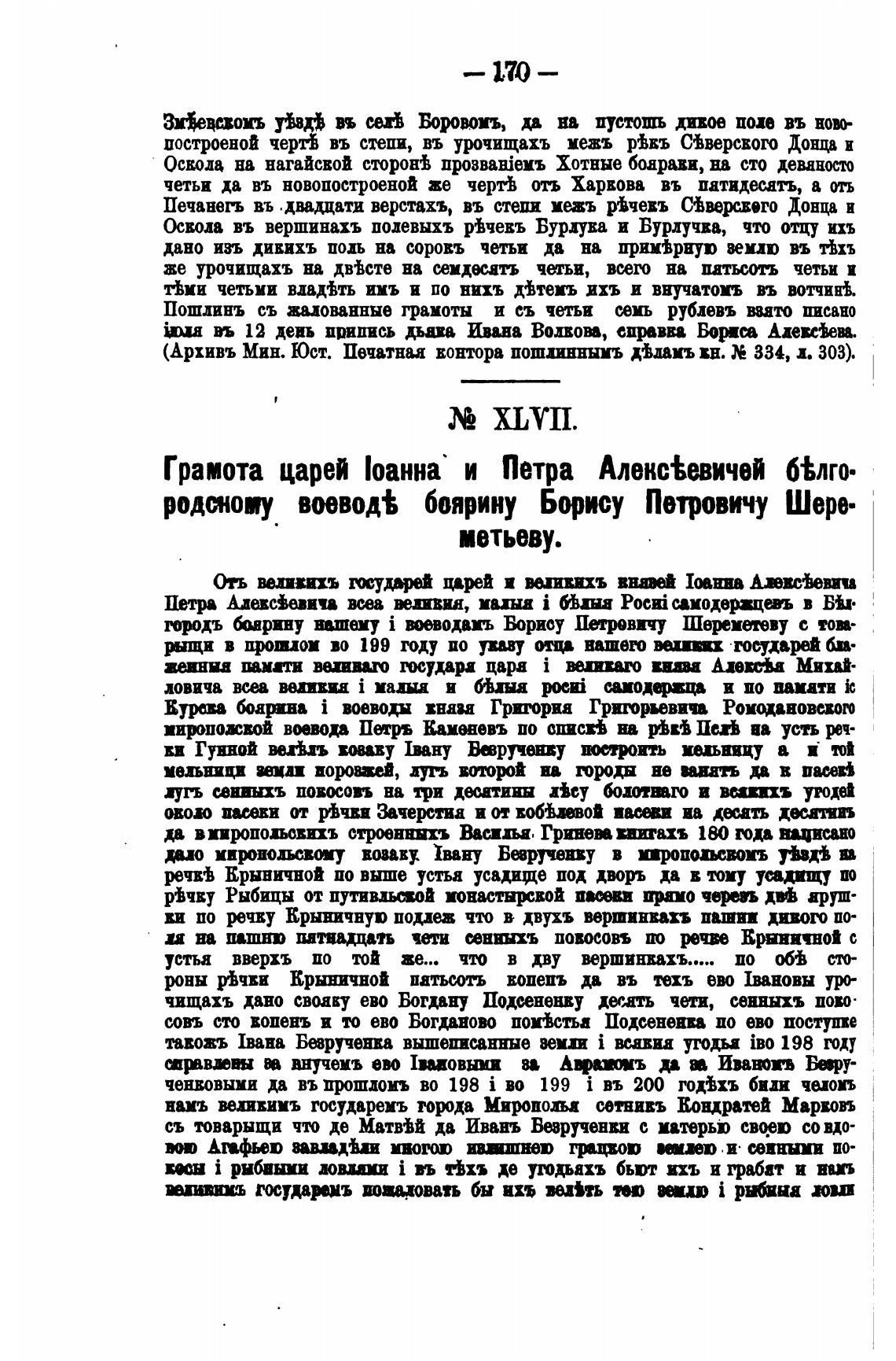 Грамота царей :оанна и Петра Алекс{евичей б%лго.