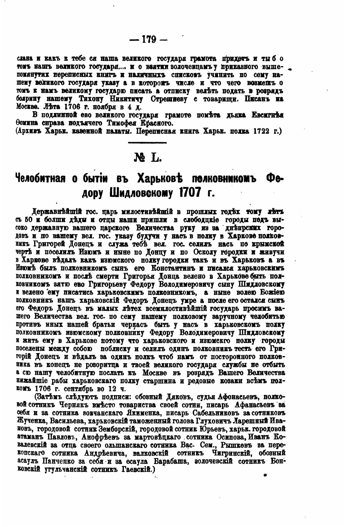 (Архивъ Харьв. папты. Переписная ввит Харьв. пова 1722 г.)