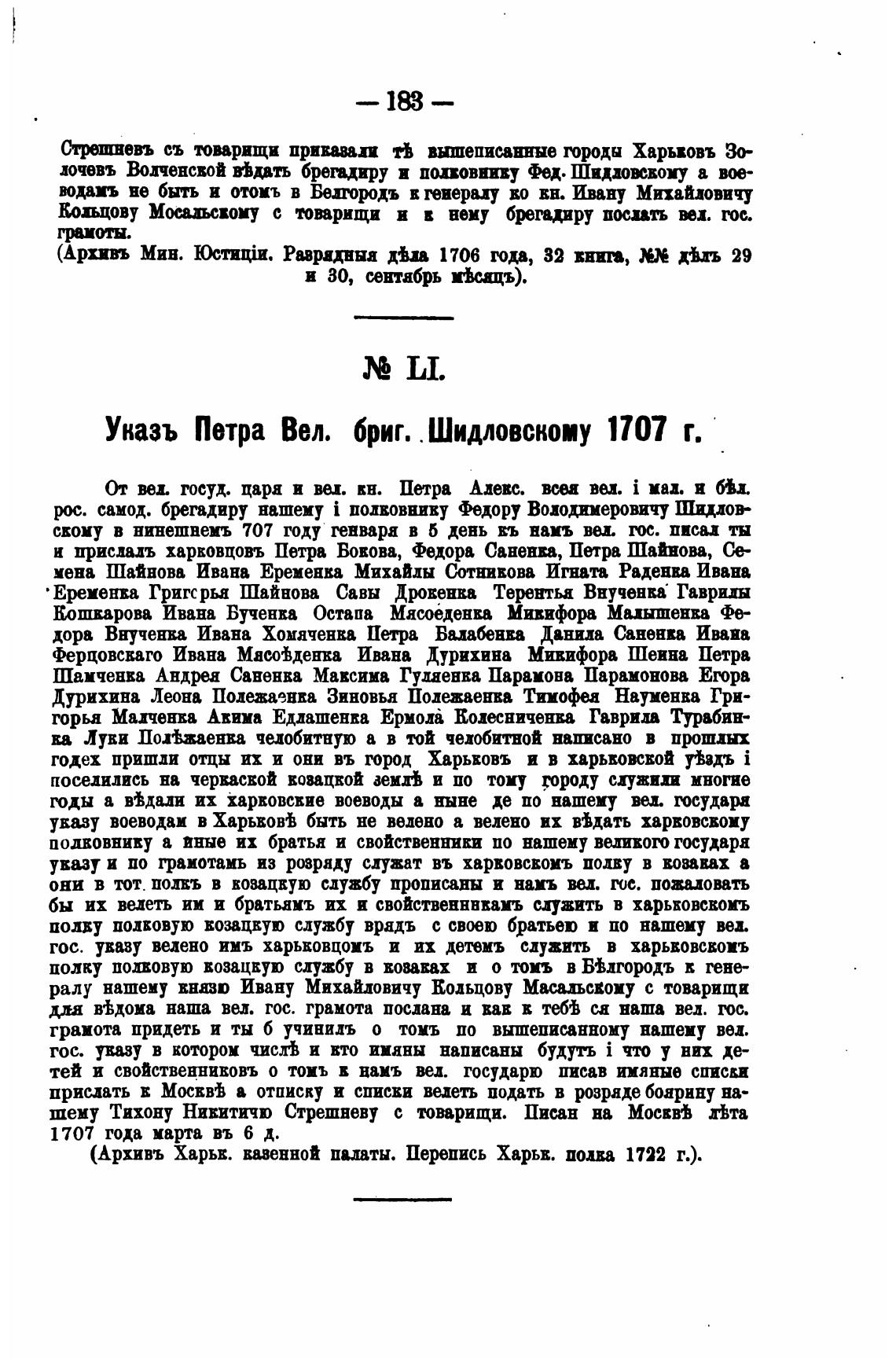 Уназъ Петра Вел. бриг. Шидловскому 1707 г.