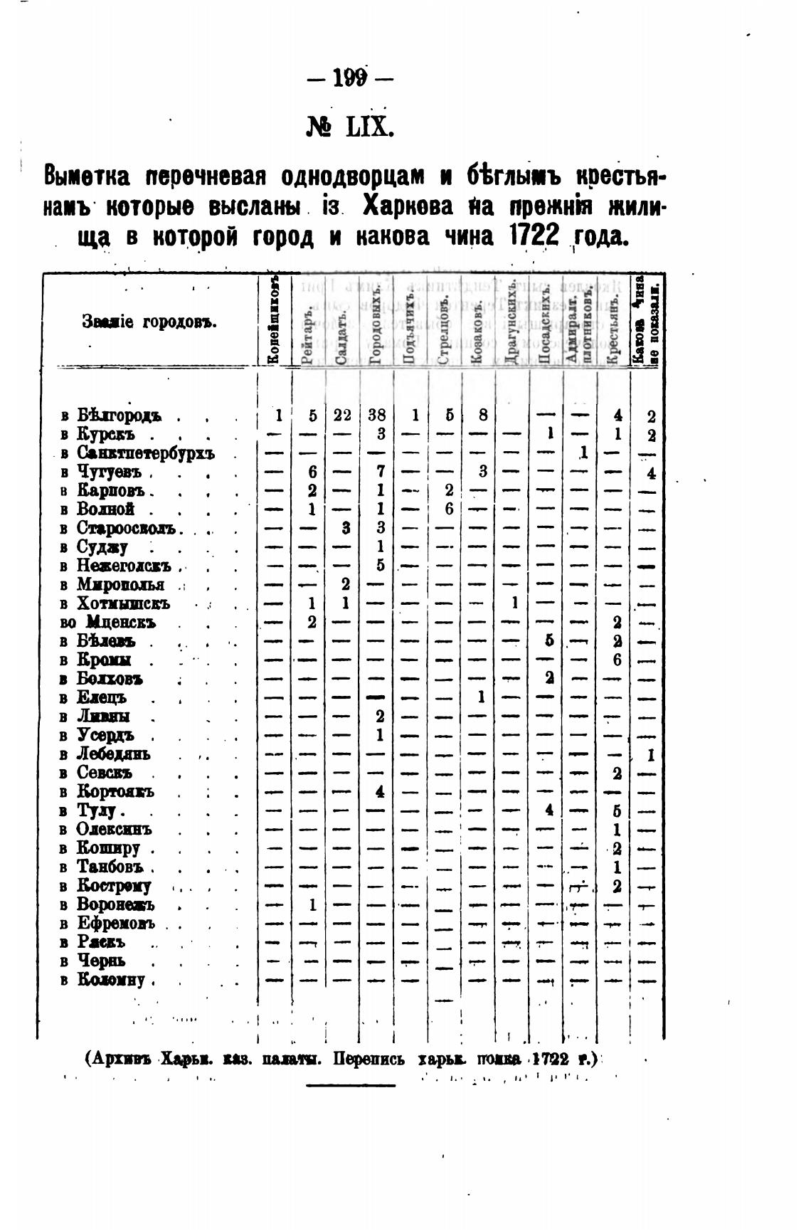 Выметка перечневая однодворцам и б±глыиъ крестья-